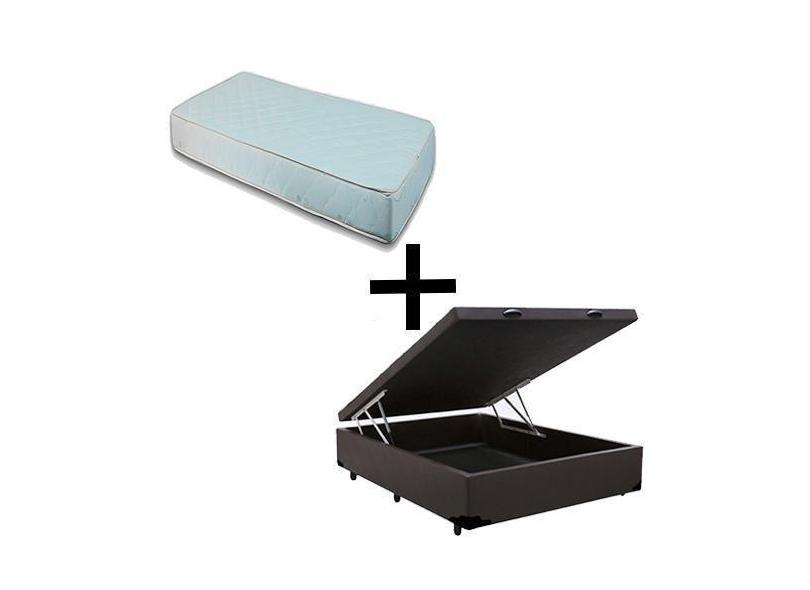 Cama Box Baú Casal 138 - Tecido Sintético Marrom Com Colchão Munique B