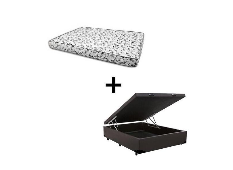 Cama Box Baú Casal 138 - Tecido Sintético Marrom Com Colchão Nápoles B