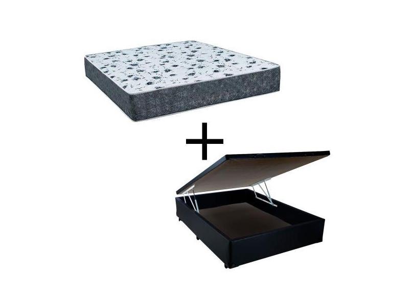 Cama Box Baú Casal 138 Tecido Sintético Preto Com Colchão Alegro Bello