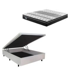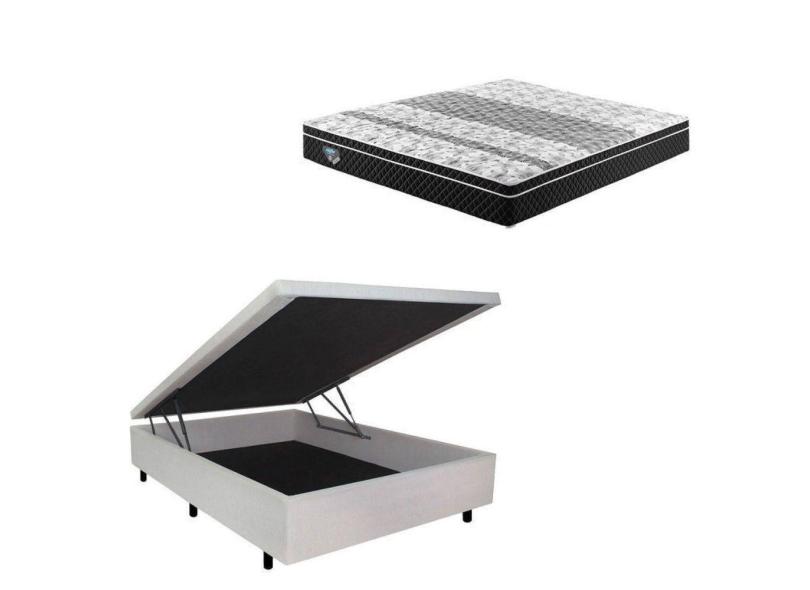 O menor preço encontrado no Brasil para Cama Box Baú Casal 138x188cm em Courino com Colchão GranSleep Molas Verticoil Ecoflex Areia/Preto atualmente é R$ 2.109,96.