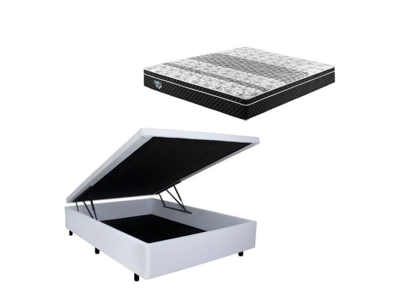 Cama Box Baú Casal 138x188cm em Courino com Colchão GranSleep Molas Verticoil Ecoflex Branco/Preto