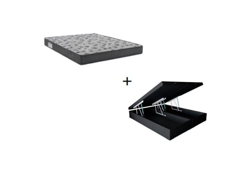 Cama Box Baú Casal Bipartido 138 Tecido Sintético Preto com Colchão De Espuma - D33 Ortobom iso 100