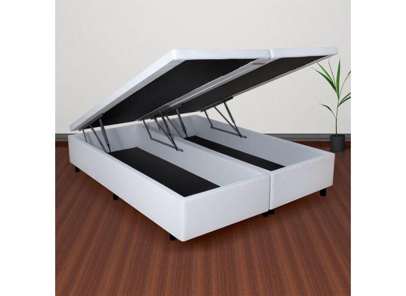 Cama Box Baú Casal Bipartido 138x188x42cm Courino Linho Branco Com Pistão A Gás