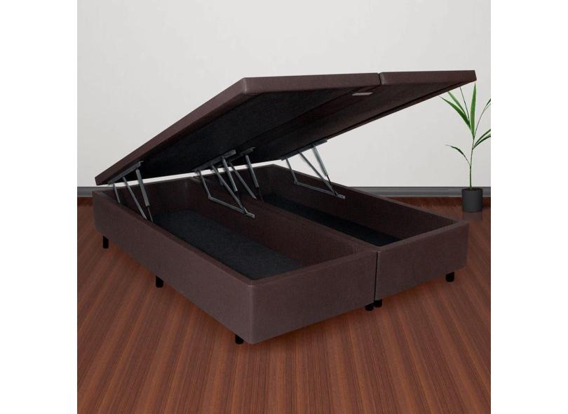 Cama Box Baú Casal Bipartido 138x188x42cm Courino Linho Marrom Com Pistão A Gás