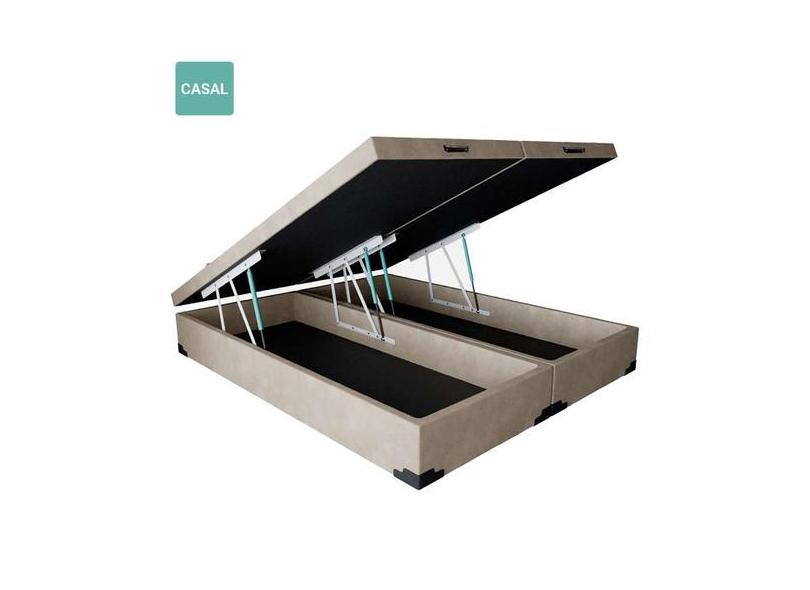 Cama Box Baú Casal Bipartido Sintético Bege 38x138x188 - RR COLCHOES