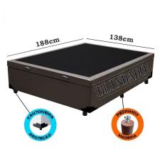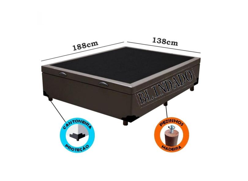 Cama Box Baú Casal Blindado Corino Marrom Com Pistão A Gás