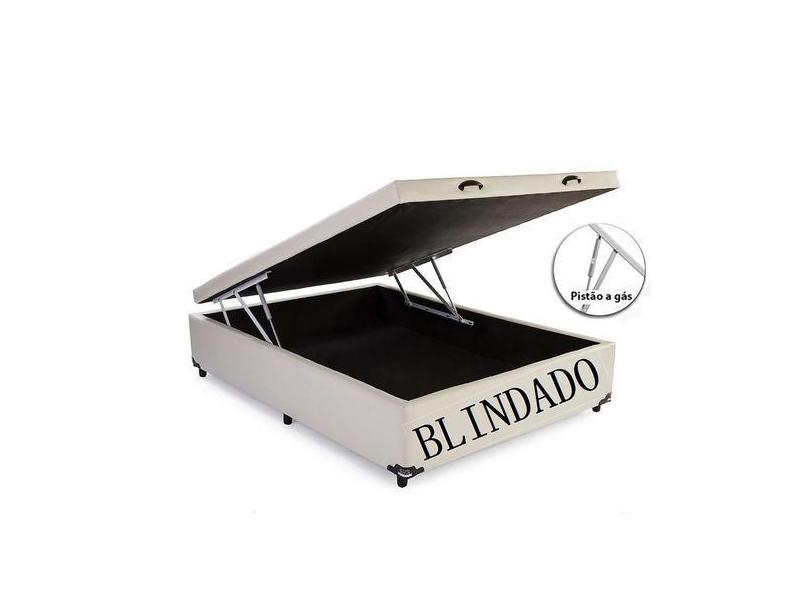 Cama Box Baú Casal Blindado Sintético Bege Com Pistão A Gás - Mais Cam