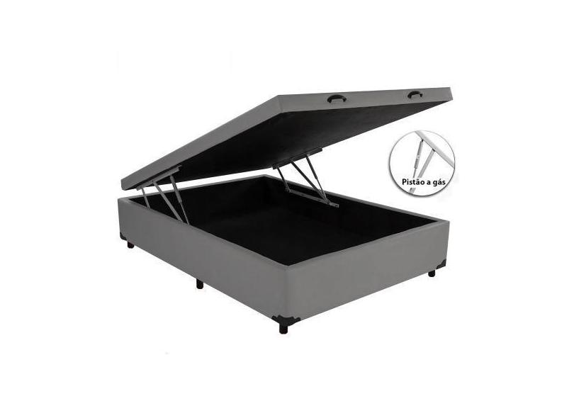 Cama Box Baú Casal Blindado Sintético Cinza Com Pistões A Gás - Real C