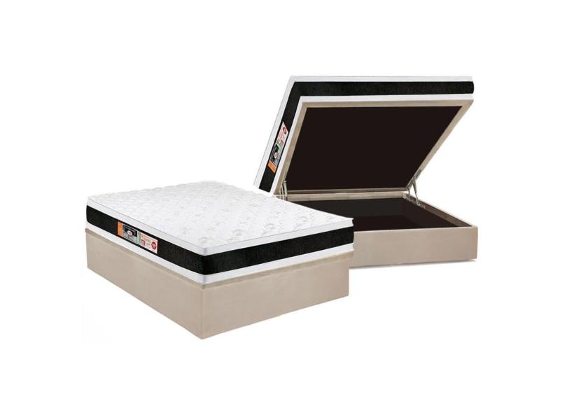 Cama Box Baú Casal: Colchão Espuma Castor D45 Black e White Air Double Face + Base CRC Suede Clean(138x188)