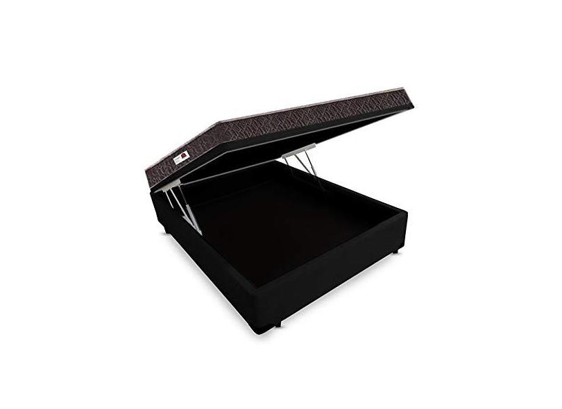 Cama Box Baú Casal Colchão Espuma D33 + Box Suede Preto Serra Negra 56x138x188