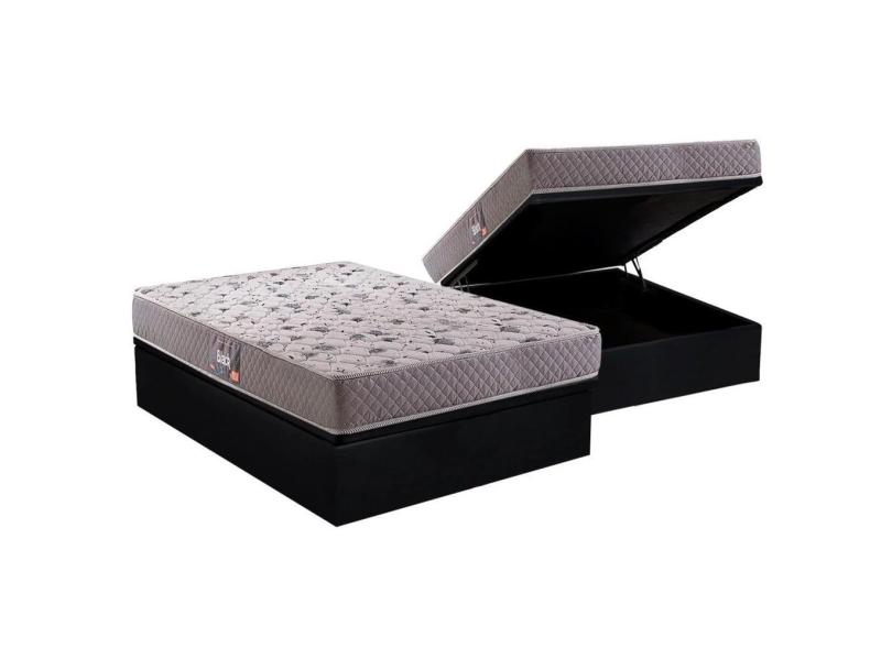 Cama Box Baú Casal: Colchão Espuma D45 Herval / AG65 Black Double Face + Base crc Suede Black(138x188)