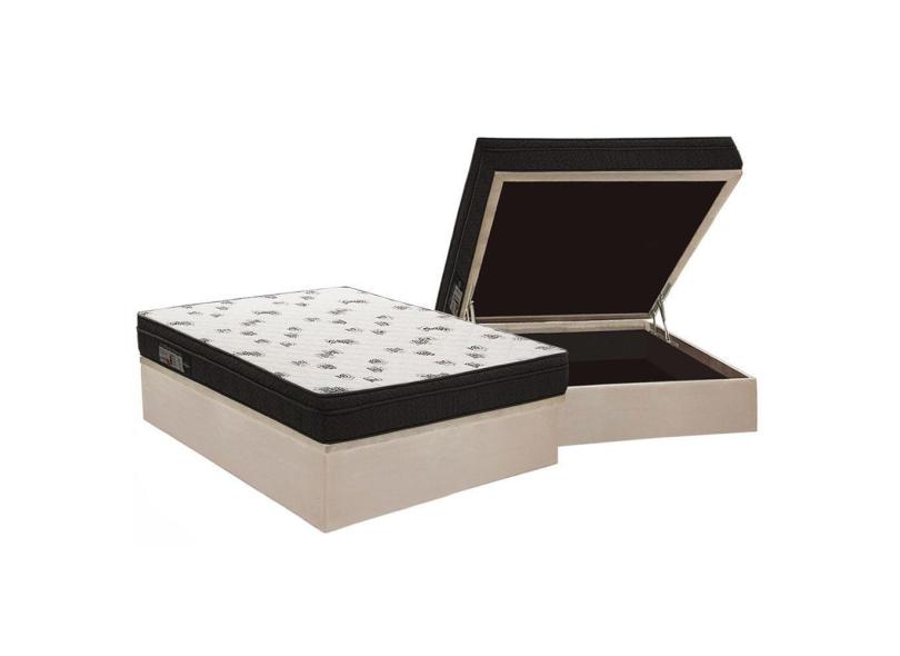 Cama Box Bau Casal Colchao Espuma Ortobom D45 New Top Double Face Base Crc Suede Clean 138X188