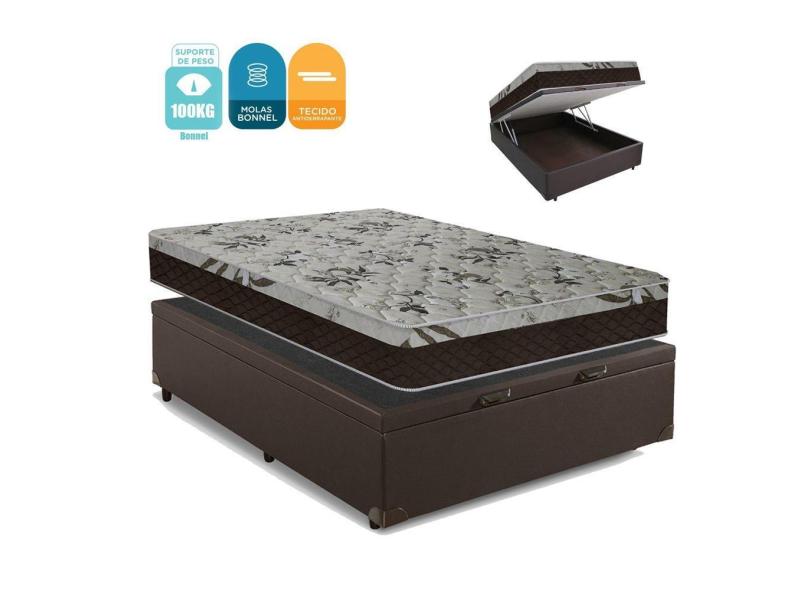 O menor preço encontrado no Brasil para Cama Box Baú Casal Colchão Molas Bonnel + Box Suede Marrom 65x138x188cm atualmente é R$ 999,00.