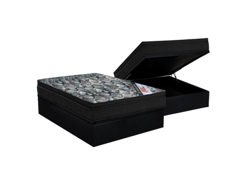 Cama Box Baú Casal: Colchão Molas Bonnel Ortobom Nanolastic Fort Tech ISO + Base CRC Suede Black(138x188)