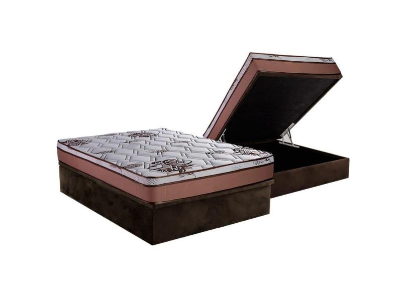 Cama Box Baú Casal: Colchão Molas Ensacadas Luckspuma MasterPocket Caribe + Base CRC Suede Brown(138x188)
