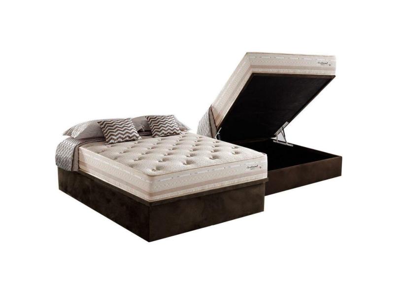 O menor preço encontrado no Brasil para Cama Box Baú Casal: Colchão Molas Herval Maxspring Scotland + Base Crc Suede Brown(138X188) atualmente é R$ 2.367,13.