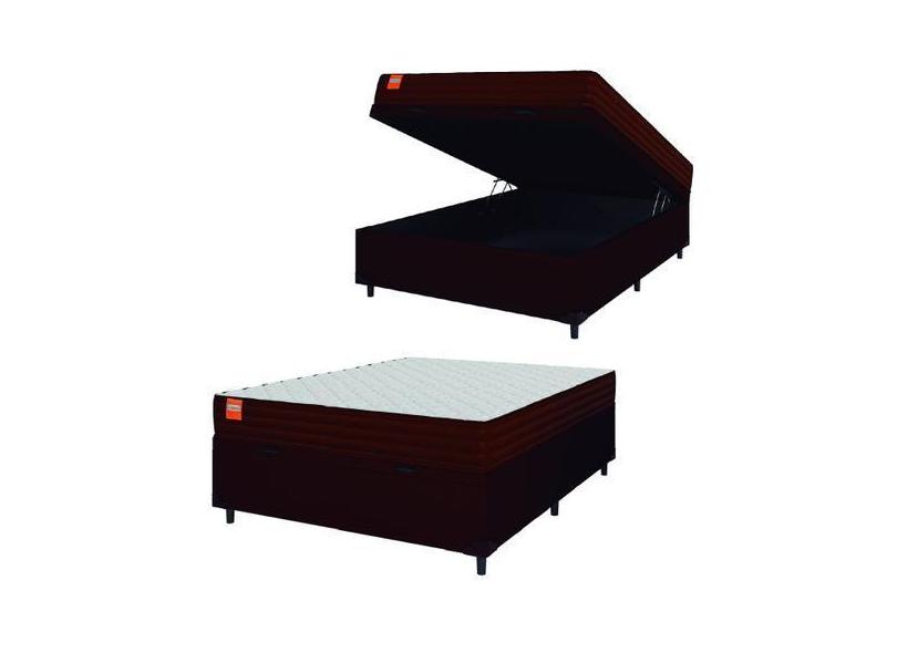 Cama Box Baú Casal Colchão Molas Qatar 138X188x63cm Marrom / Branco -