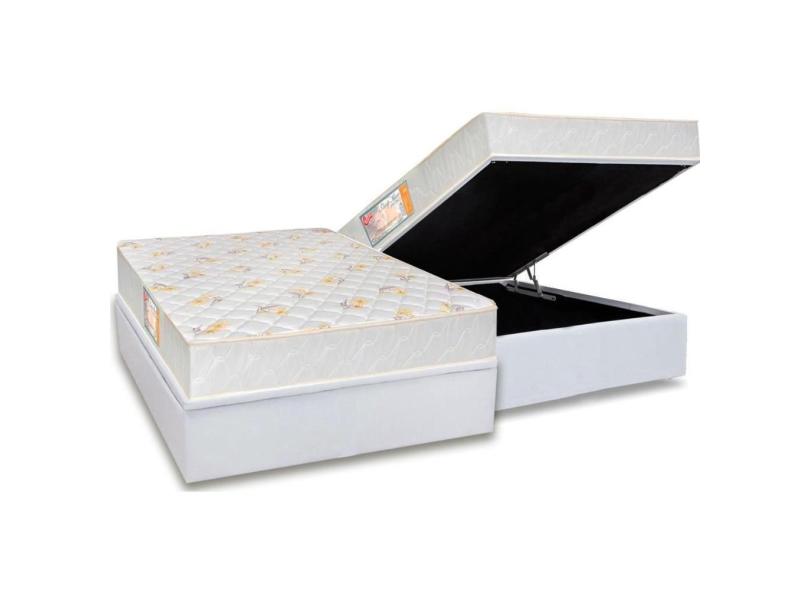 Cama Box Baú Casal: Colchão Ortopédico Castor Sleep + Base Crc Courano White(138x188)