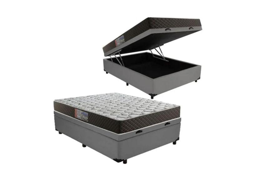 Cama Box Baú Casal Conforto Suede Cinza + Colchão Casal Conforto Espuma D23 Com EPS 24x138x188