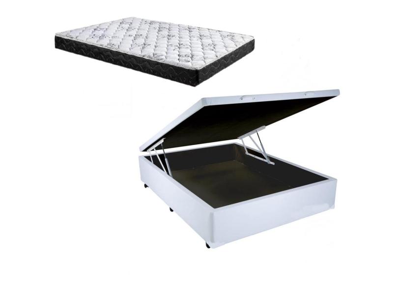 Cama Box Baú Casal Dreams Sintético Branco + Colchão Casal Dreams Espuma D23 Com eps 24x138x188