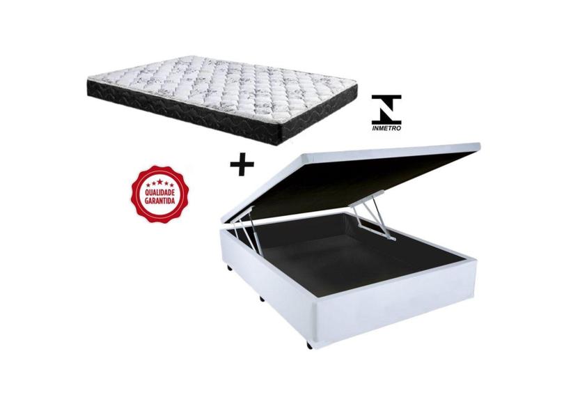 Cama Box Baú Casal Green Branco + Colchão Espuma D33 138x188x12