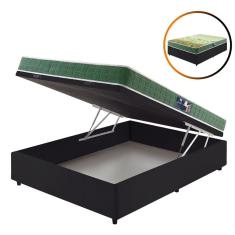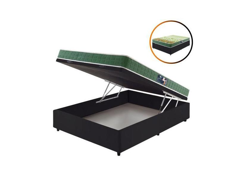 Cama Box Baú Casal Preta + Colchão Espuma D70/D28 Atlanta Verde 138x18