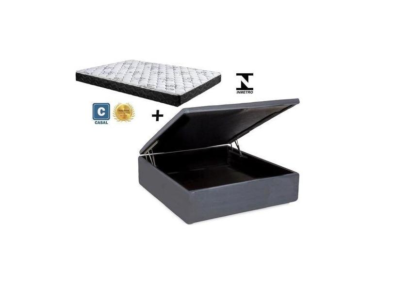 Cama Box Baú Casal Resistence Sintético Cinza + Colchão Casal Resis