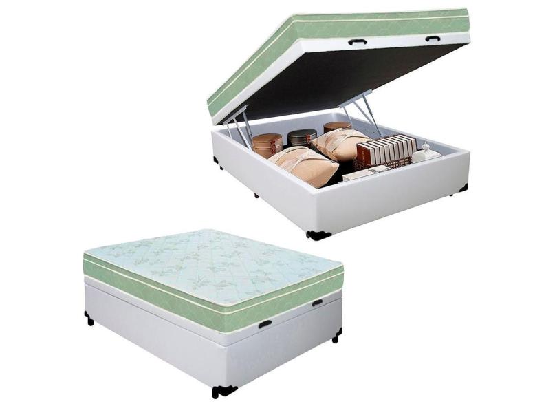 Cama Box Baú Casal Sintético + Colchão Castor Espuma D33 Sleep Max 138x188x67 Cor:branco