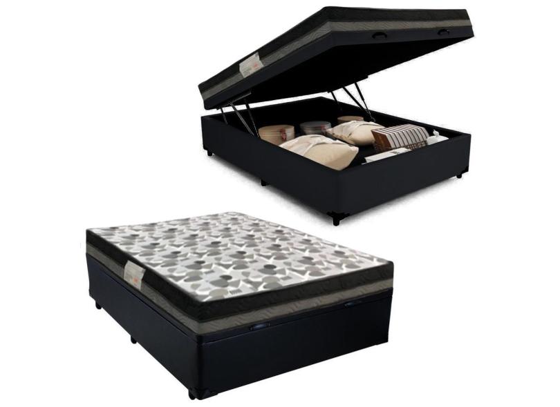 Cama Box Baú Casal Sintético + Colchão Ortobom Iso Dupla Face 60X138X188 Preto