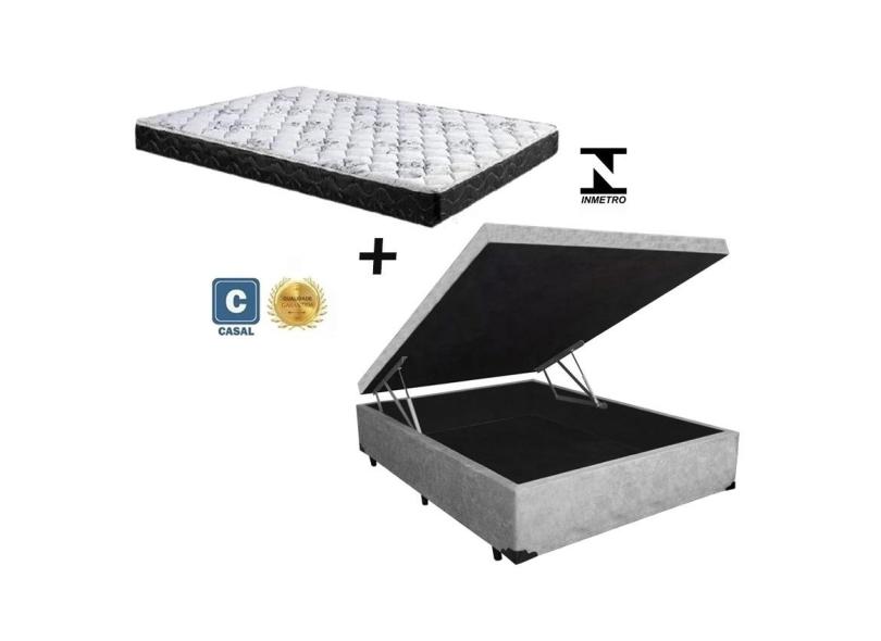 Cama Box Baú Casal Suede Cinza + Colchão Casal Espuma D23 Com eps 17x138x188