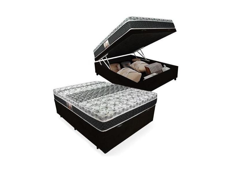 Cama Box Baú Casal Suede + Colchão De Molas - Castor - Class Tecnopedi