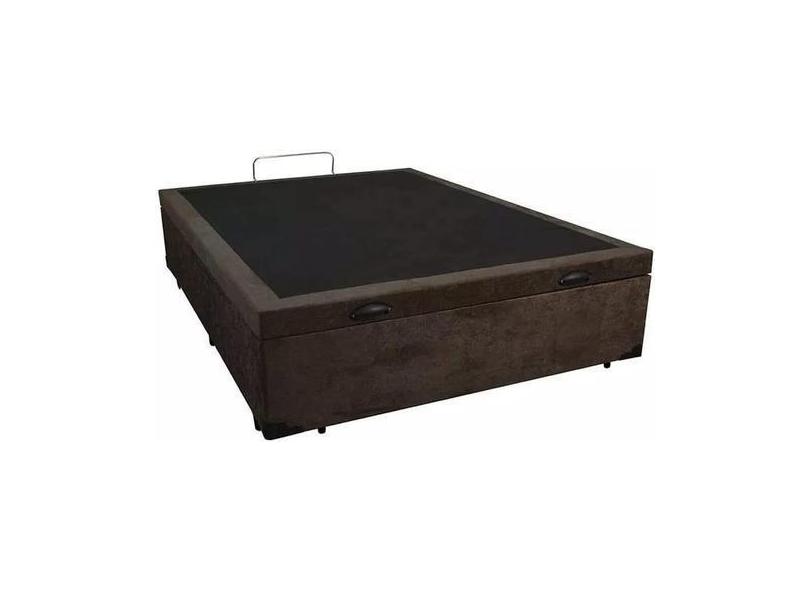 Cama Box Baú Casal Suede Marrom Com Pistões A Gás - Real Comfort Estof