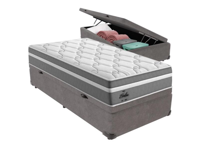 O menor preço encontrado no Brasil para Cama Box Baú Cinza e Colchão Berlim Molas Ensacadas Solteiro Probel atualmente é R$ 1.398,59.
