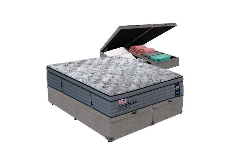 Cama Box Baú Cinza E Colchão King Charlotte Molas Ensacadas Sealy