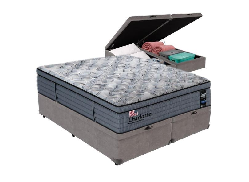 O menor preço encontrado no Brasil para Cama Box Baú Cinza e Colchão Queen Charlotte Molas Ensacadas Sealy atualmente é R$ 5.039,65.