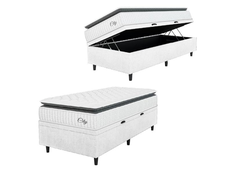 O menor preço encontrado no Brasil para Cama Box Baú Colchão Solteiro Molas Ensacadas City Pillow Top 88x188x64cm Linho Branco / Preto Hellen - Suporta até 110kg por Pessoa atualmente é R$ 1.200,28.