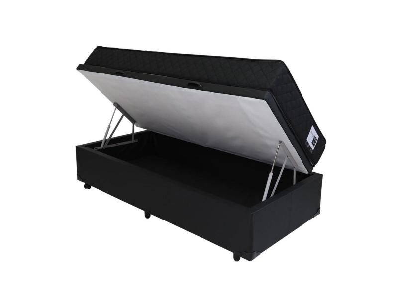 Cama Box Baú com Colchão Solteiro Americano Mega Light Black - 096x203