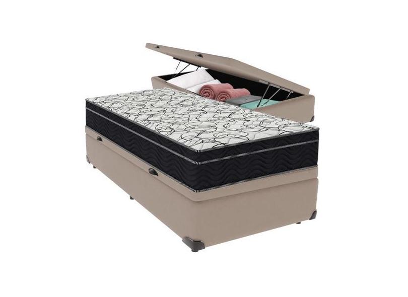 Cama Box Baú e Colchão Airtech 150 Espuma D45 Solteiro Ortobom, BEGE