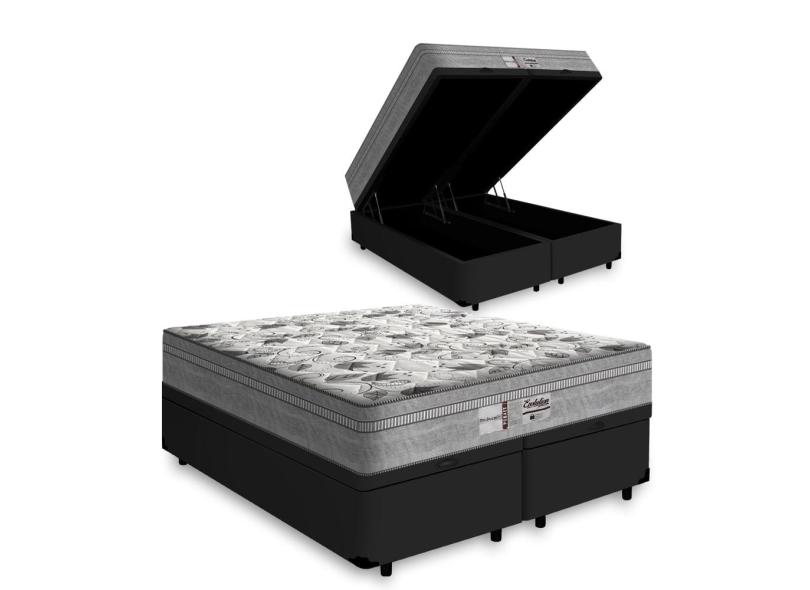 Cama Box Baú King 193 Bipartido Tecido Sintético Preto Com Colchão de Molas Ensacadas Evolution - Probel