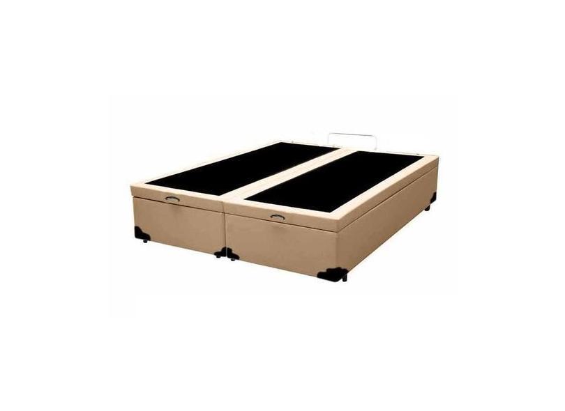 Cama Box Baú King Bipartido Sintético Bege Com Pistão A Gás - Mais Cam
