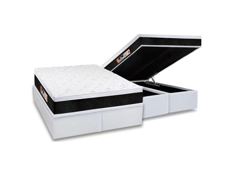 Cama Box Baú King: Colchão Espuma Castor D45 Black e White Air Euro Pillow + Base crc Courano White(193x203)