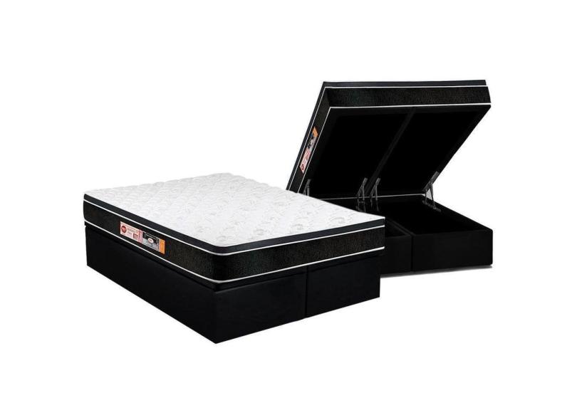Cama Box Baú King: Colchão Espuma D33 Castor Black e White Air Euro Pillow + Base CRC Courano Black(193x203)