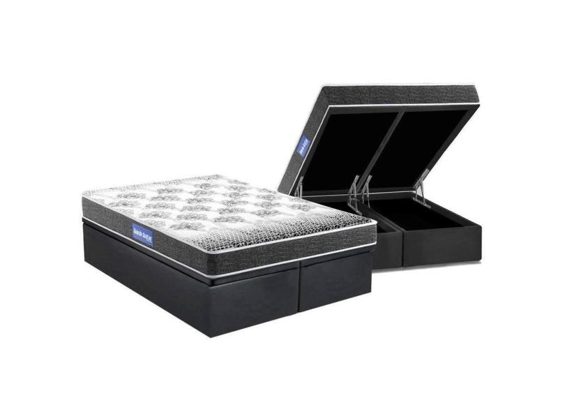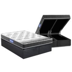 Cama Box Baú King: Colchão Espuma Probel D20 Guarda Costas Resistente Black + Base CRC Suede Gray(193x203)