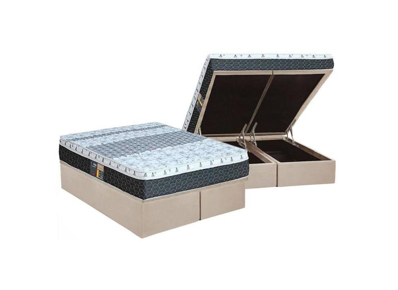 Cama Box Baú King: Colchão Molas Bonnel Castor System Class One Face + Base CRC Suede Clean(193x203)