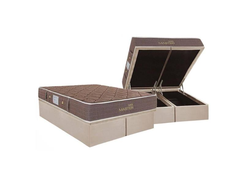 Cama Box Baú King: Colchão Molas Bonnel Herval Suite Master + Base CRC Suede Clean(193x203)