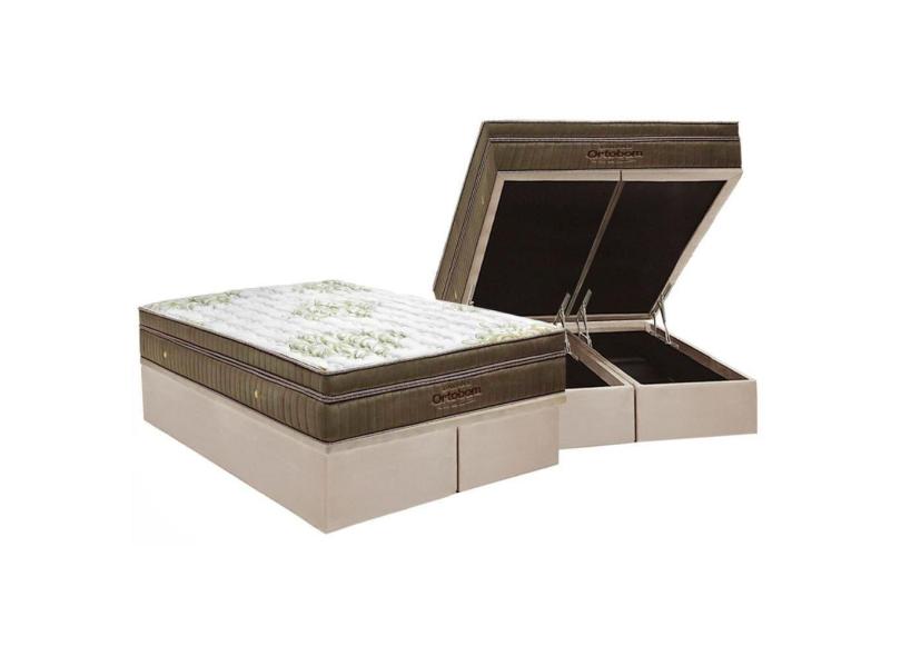 Cama Box Baú King: Colchão Molas Ensacadas Ortobom SuperPocket Gold Ultra Gel + Base CRC Suede Clean(193x203)