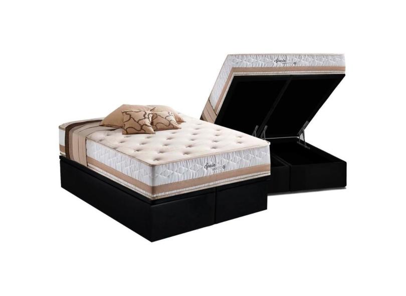 Cama Box Baú King: Colchão Molas Herval Maxspring Spain + Base Crc Suede Black(193X203)