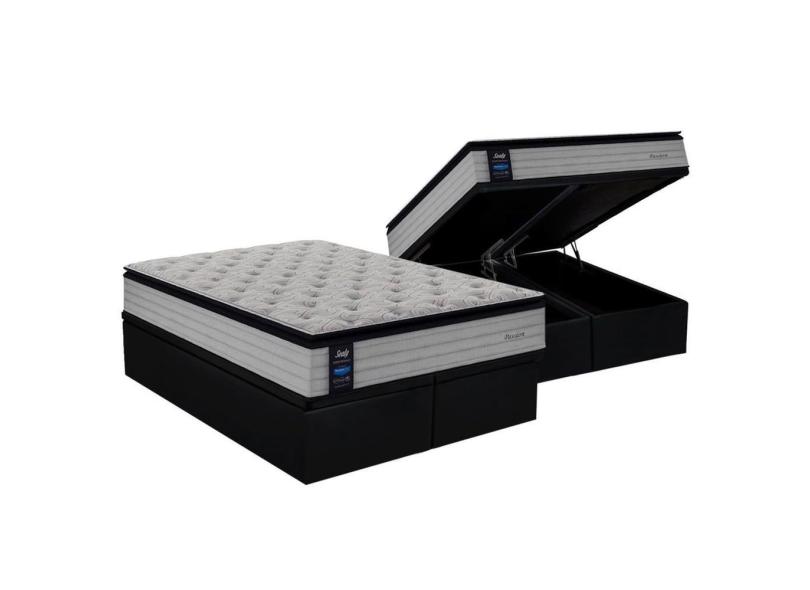 O menor preço encontrado no Brasil para Cama Box Baú King: Colchão Molas Sealy Posturepedic Passion + Base crc Suede Preto(193x203) atualmente é R$ 4.575,04.