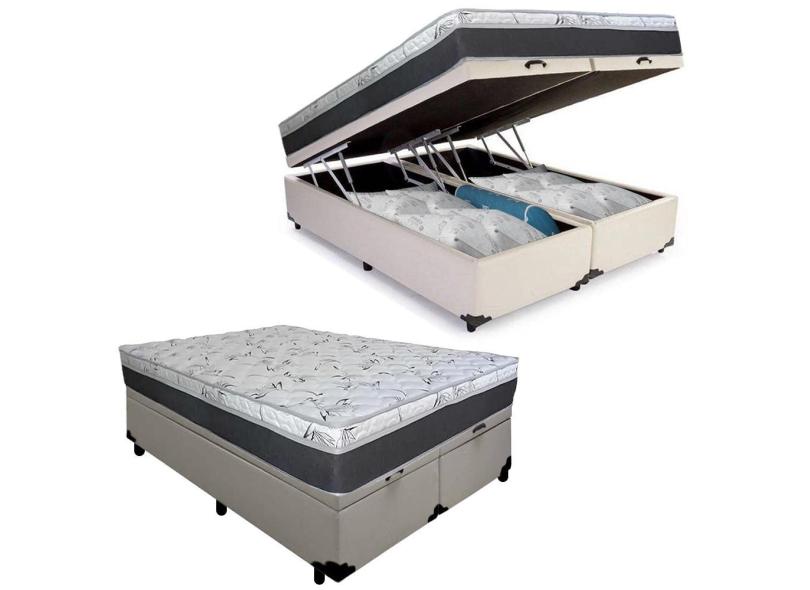 Cama Box Baú King Sintético + Colchão Castor Class One Face Molas Tecnopedic 193x203x67 Branco