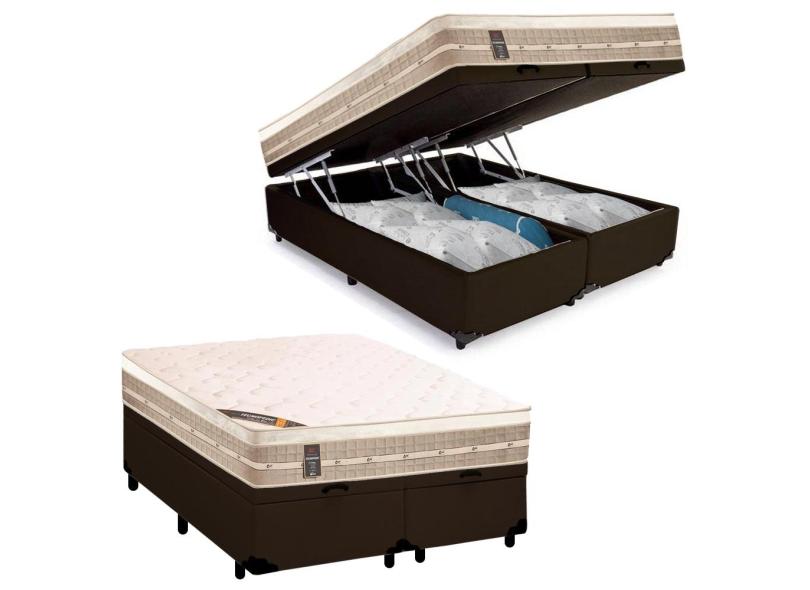 Cama Box Baú King Sintético + Colchão Castor Premium com Euro Pillow e Molas Tecnopedic System 193x203x72 Marrom